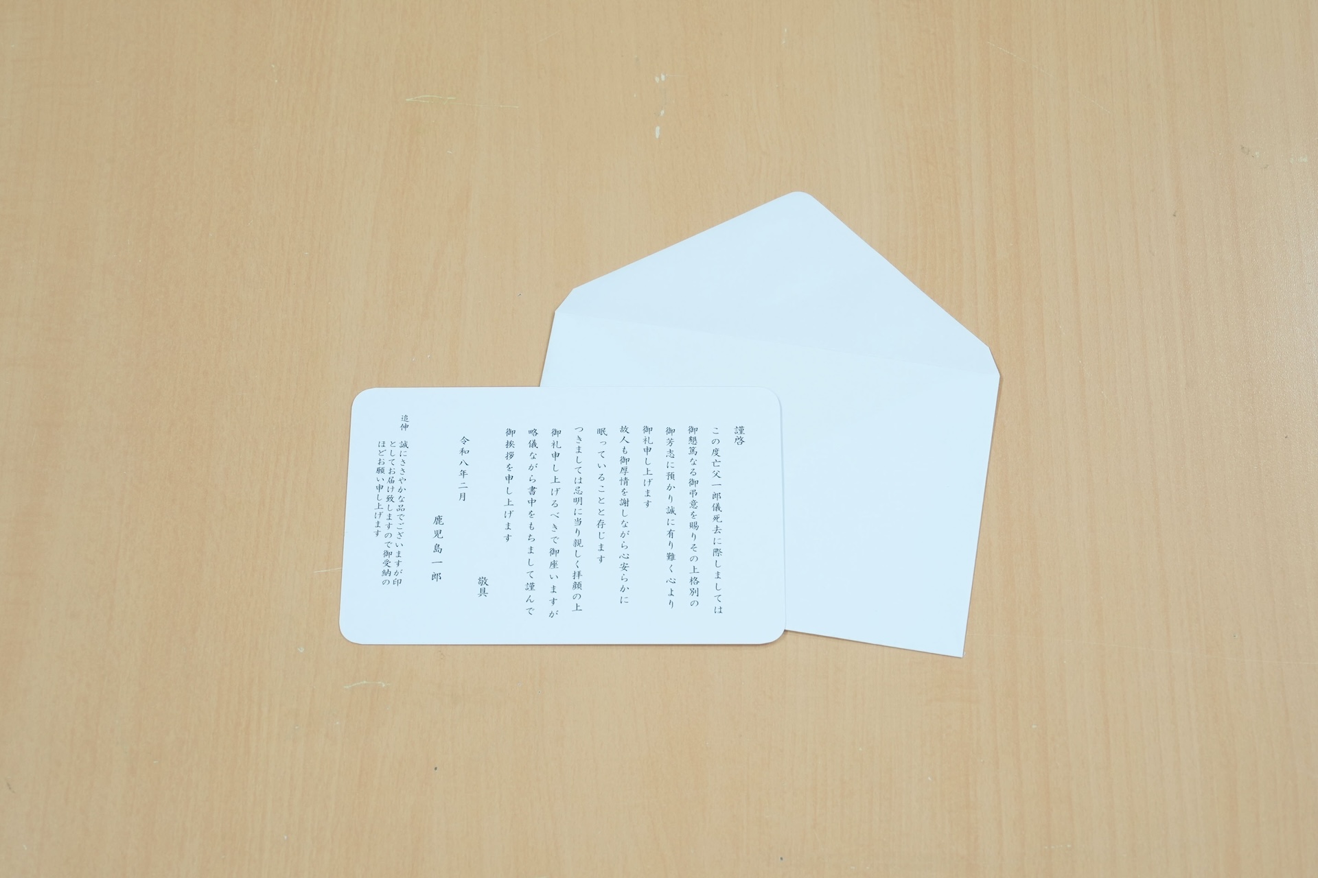 無料にてお礼状を作成し、商品に同封いたします。